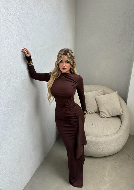 Fustan ngjyre kafe. Material i plote dhe shume i bute, vjen i gjate deri ne...