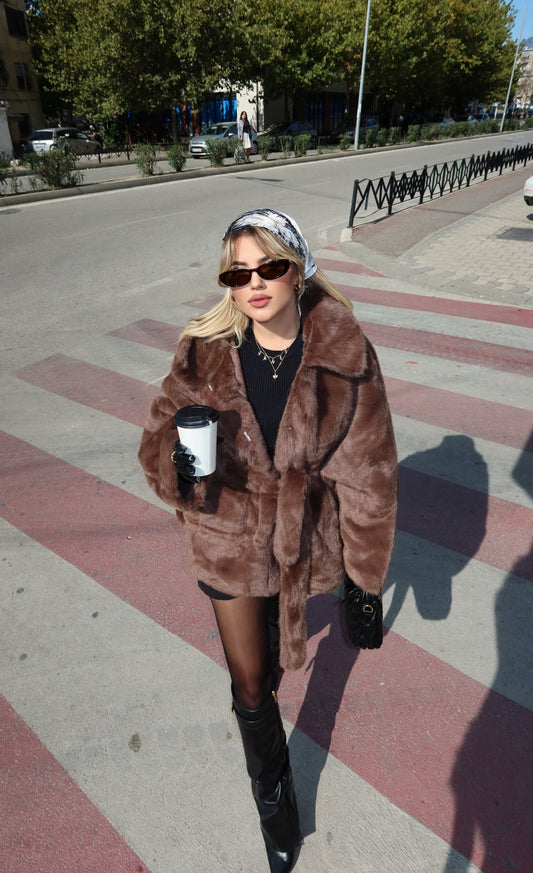 Pellush i shkurter ne ngjyren kafe.Eshte me astar ne pjesen e brendshme dhe ka material...