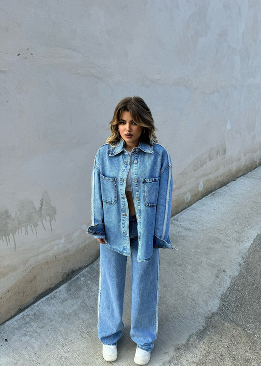 Xhinse blu ne stil straight. Te pasura me gure me shkelqim te plote dhe super...