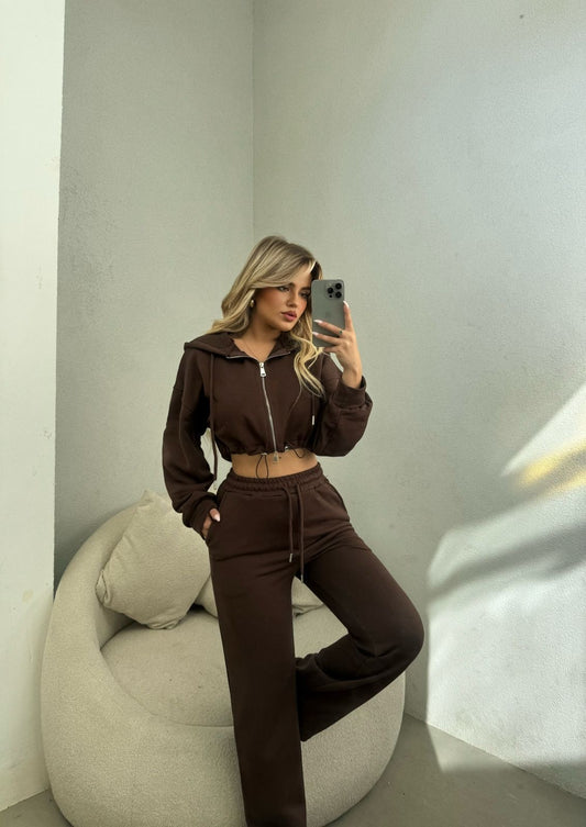 Set sportiv ne ngjyren kafe, eshte me dy pjese xhakete vjen me zinxhir , tutat...