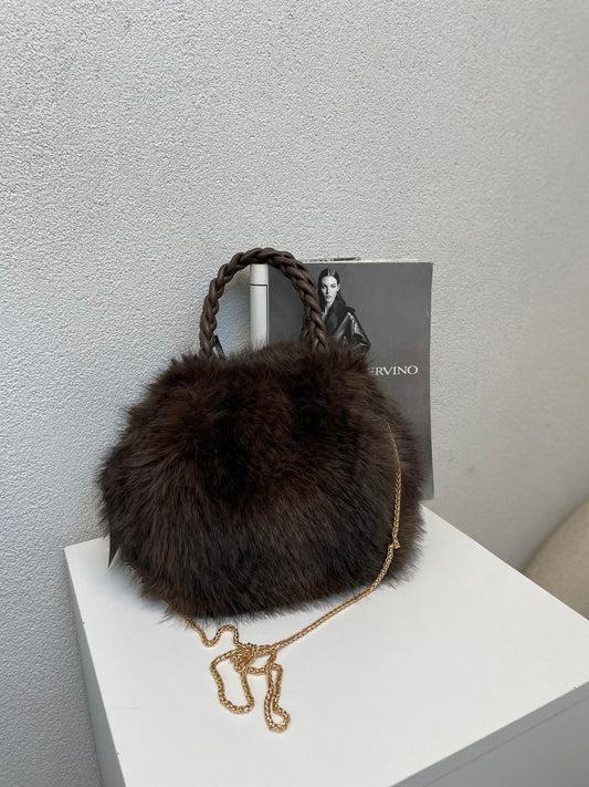 Cante rrethore ne ngjyren kafe dhe bezhe.Eshte me zinxhir te gjate dhe me push. Ka...