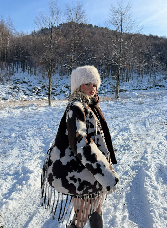 Cante cow print. Ka material pushi te bute, model te thjeshte dhe dizajn stil.