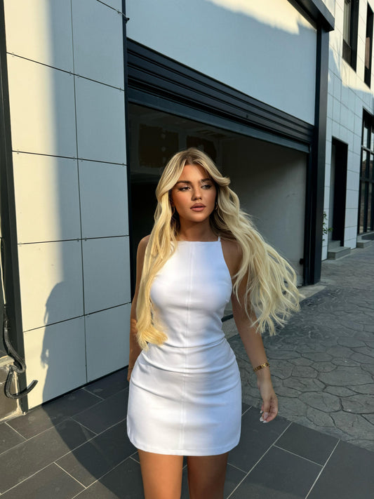Fustan i shkurter me rripa. Mbyllet me zinxhir ne ane. Shume stil dhe rri perfekt...