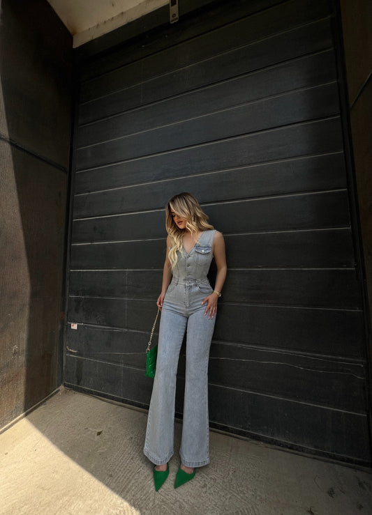 Jumpsuit xhins. Vjen me meng te shkurter dhe kopsa ne pjesen para. Kane material te plote...