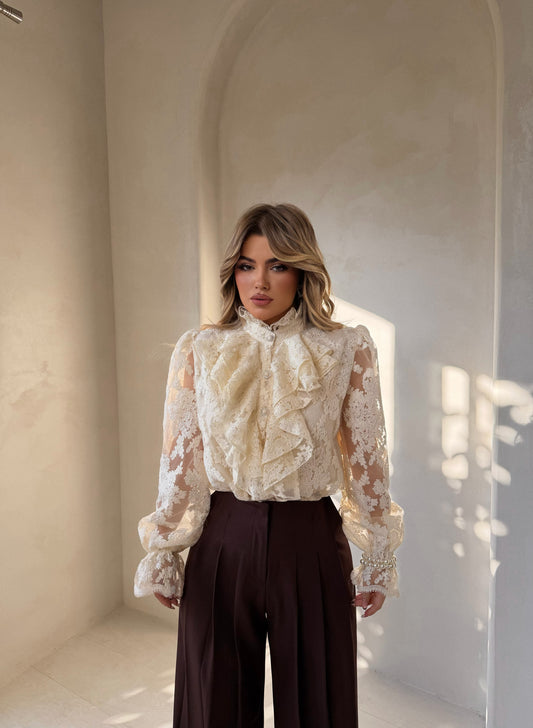 Kemishe ne ngjyren bezhe me gure. Vjen me menge te gjera dhe detaje dantelle. Teper...