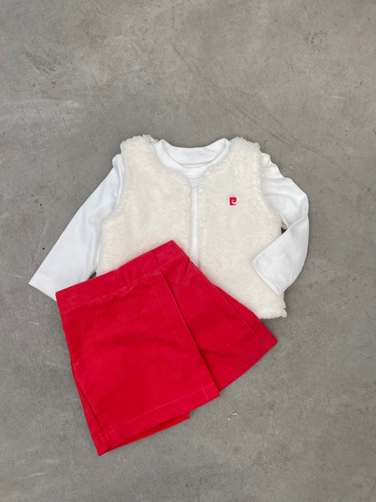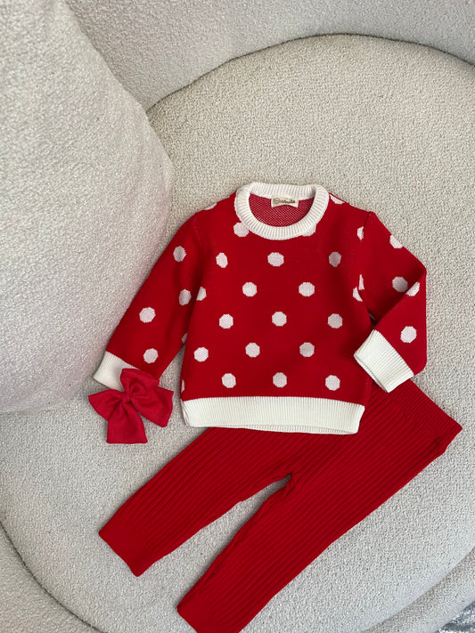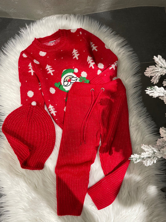 Set festiv me tre pjese. Vjen me bluze me detaje festive,tuta dhe kapuc. Ka material...
