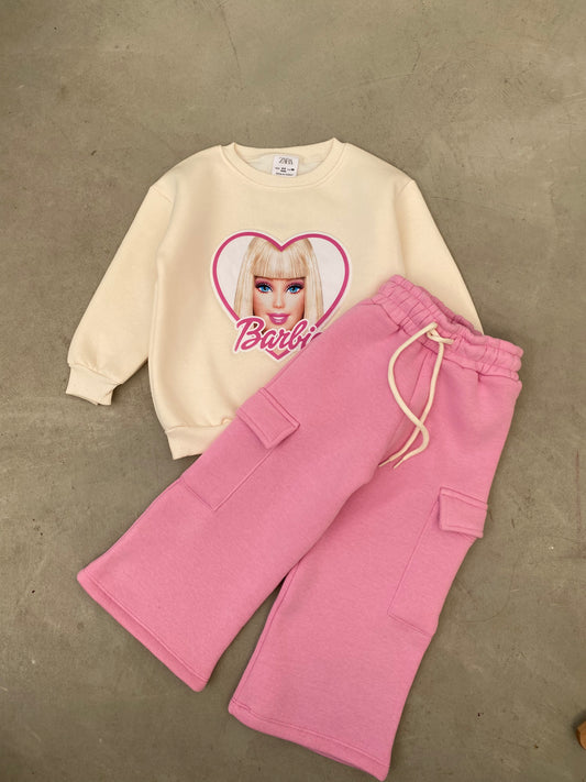 Set me dizenjo Barbie. Vjen me bluze dhe tuta te gjera me xhepa anash. Material...