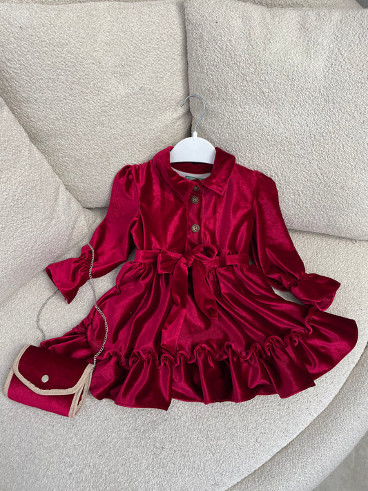Fustan velvet me rrip ne bel dhe me cante. Ka material te plote dhe eshte...
