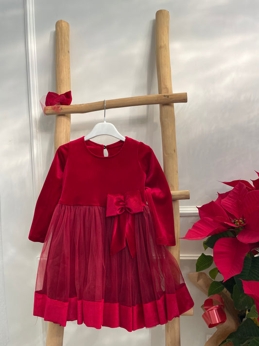 Fustan velvet me tyl ne pjesen e poshtme. Ka fjongo anash belit dhe vjen i...