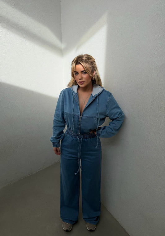 Set xhins ne ngjyren blu.Seti perbehet nga dy pjese hoodie me zinxhire dhe pantallonat me...