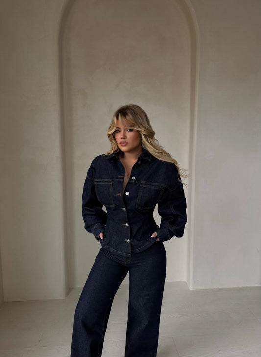 Set xhins ngjyre blu. Set xhinsi blu me dy pjese, xhakete me krahe te gjate,...