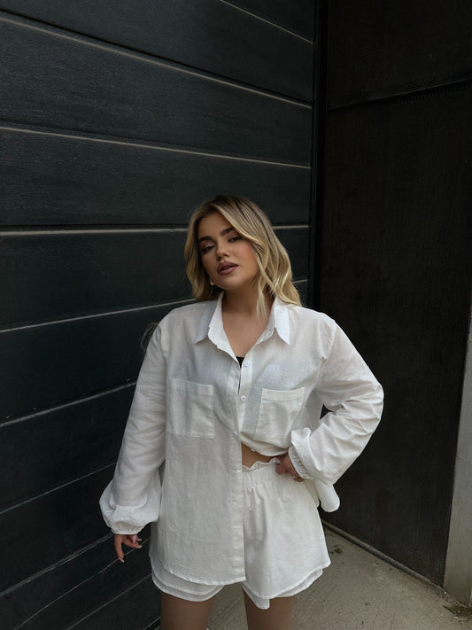 Seti kemishe dhe pantallona te shkurtera. Kemisha vjen me kopsa ne pjesen para. Pantallonat vijne...