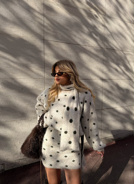 Seti bezhe me tre pjese, fund i shkurter,pulover dhe shall. Seti vjen me nje dizajn...