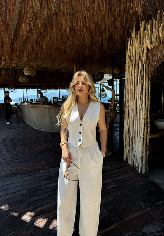 Set me dy pjese ne ngjyren e verdhe. Eshte me jelek me kopsa para dhe...