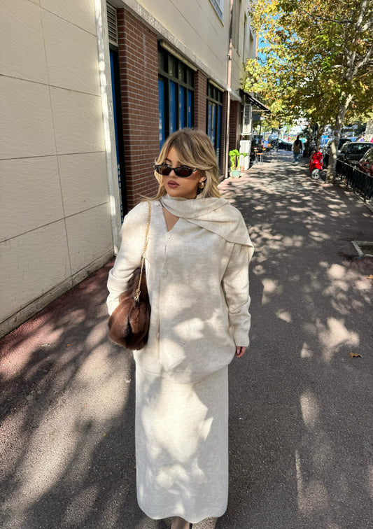 Set me dy pjese ngjyre kafe, material i bute dhe i ngrohte. Lehtesishte i kombinueshem...