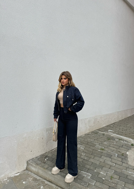 Set xhins,xhakete e shkurter dhe pantallona lidhje ne pjesen e qafes.Xhaketa me xhepa ne pjesen...
