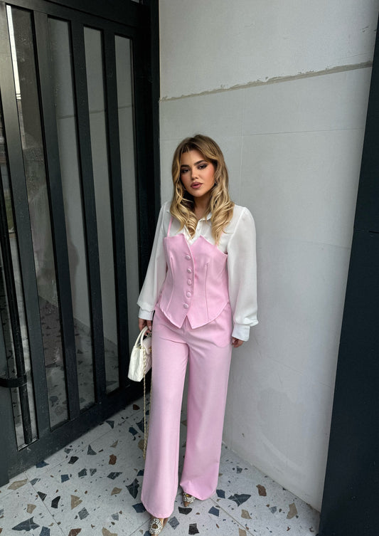 Set dy pjesesh ne ngjyre roze . Kombinim perfekt i kemishes e cila ka nje...