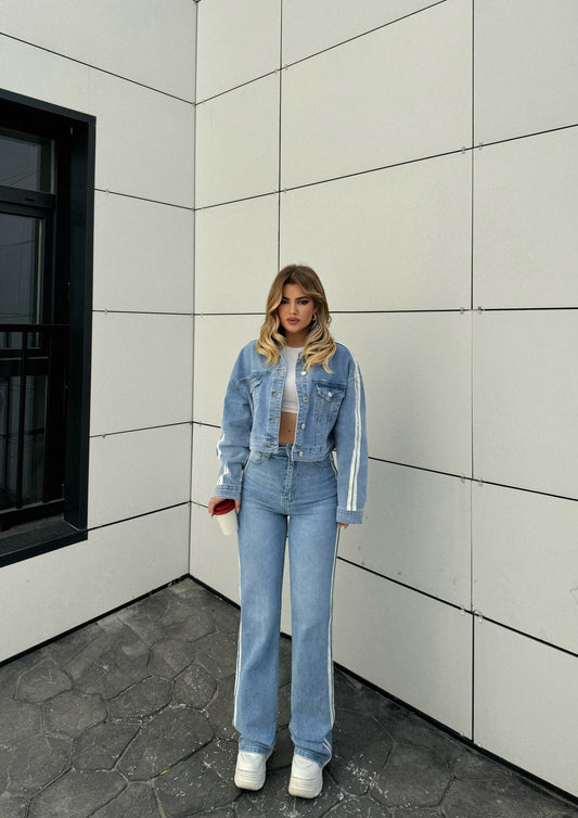 Set xhins me xhakete te shkurter me viza ne pjesen e kraheve. Xhinse te gjera...