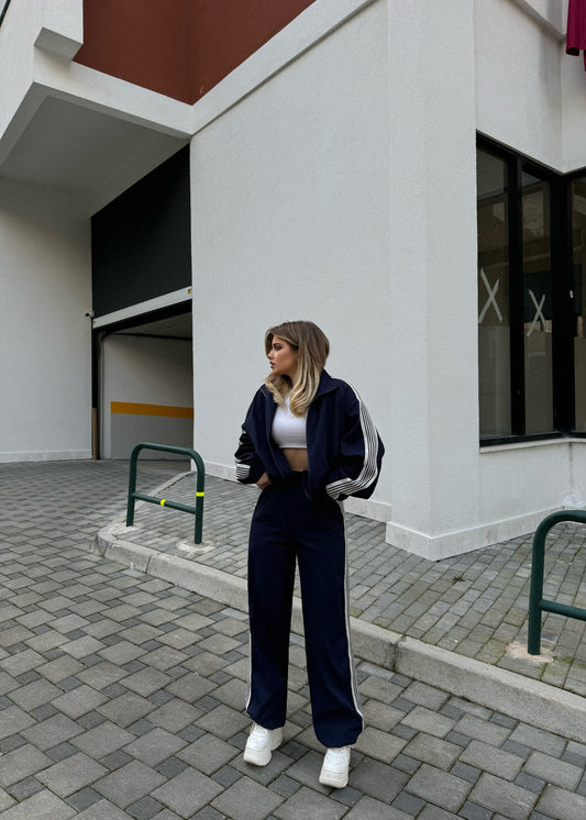 Kostum sportiv me xhakete me zinxhir dhe pantallona me llastik ne fund. Teper komod dhe...