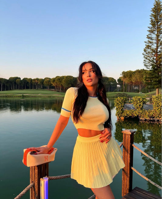 Set me detaje limonash vjen me kemishen me menge te gjata dhe pantallonat e shkurtera....