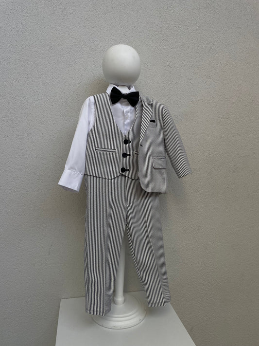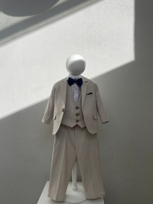 Set klasik me kater pjese per djem. Vjen me xhakete, pantallona, jelek, kemishe dhe papjon....