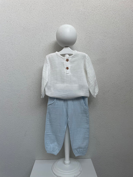Seti vjen i ndare ne bluze dhe pantallona. Bluza vjen me dy kopsa ne pjesen...