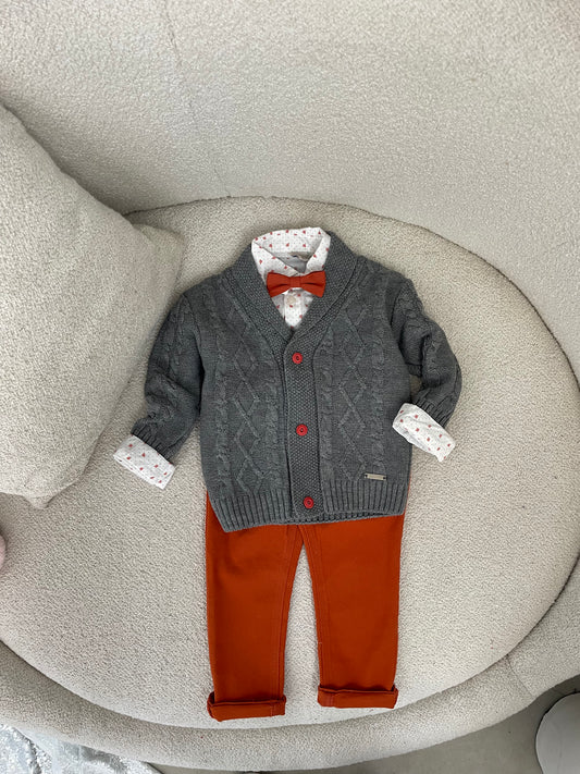 Kostum me tre pjese per djem. Vjen me kemishe,pulover me detaje festive dhe pantallona me...