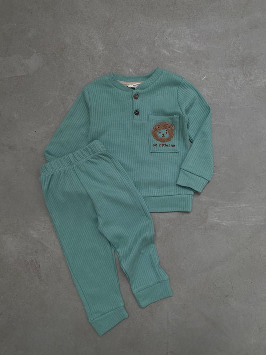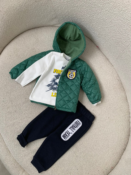 Kostum sportiv me tre pjese. Ka xhup dhe kostum sportiv. Ka material te plote pambuku...