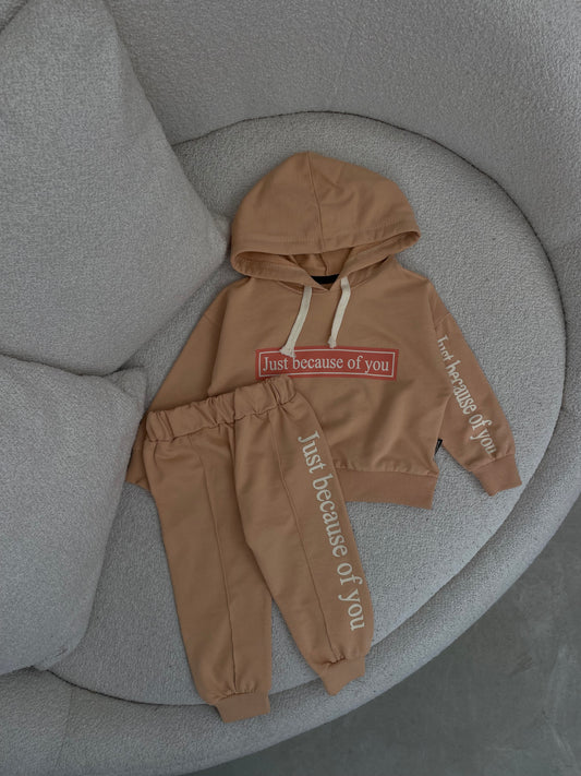 Set sportiv me hoodie. Ka material te plote dhe cilesi. Super komod dhe praktik.