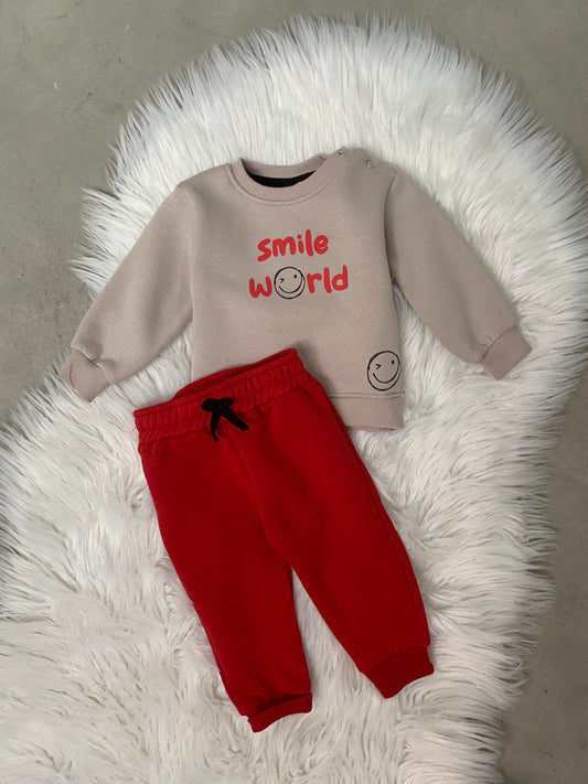 Kostum sportiv smile me bluze dhe tuta te gjata. Material i plote.