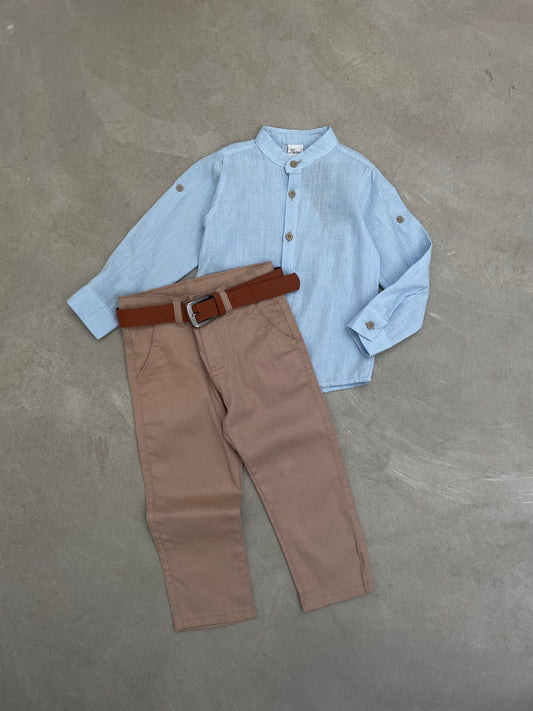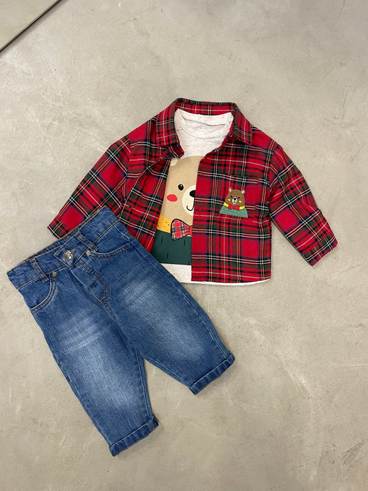 Kostum per djem me tre pjese. Vjen me kemishe me kuadrata dhe xhep anash,bluze me...