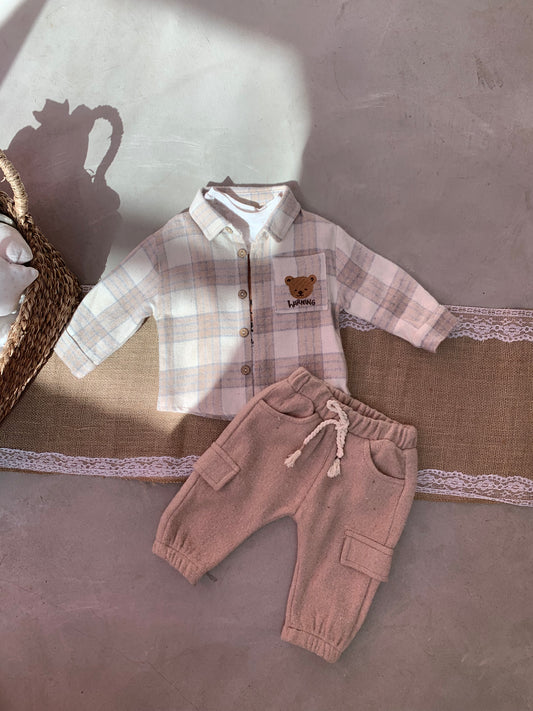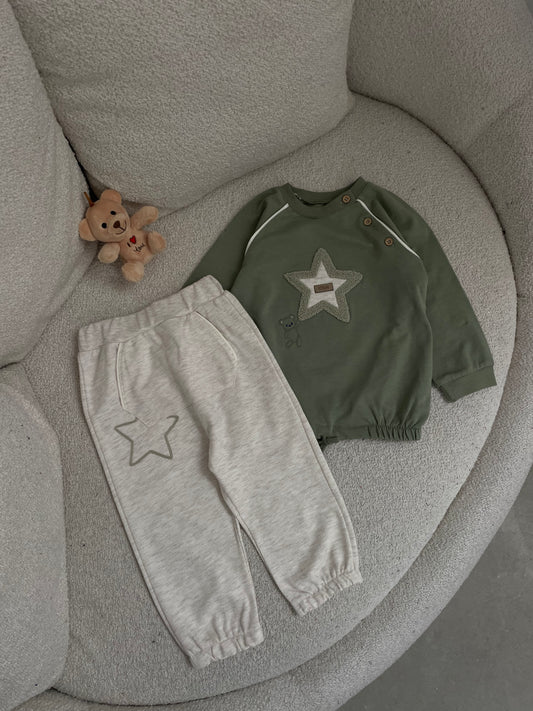 Set bluze dhe tuta te gjata. Bluza vjen me kopsa anash dhe krahe te gjata....