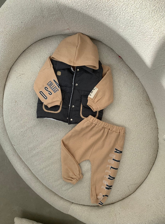 Kostum me tre pjese. Vjen me jelek, bluze me kapuc dhe tuta te gjata. Ka...