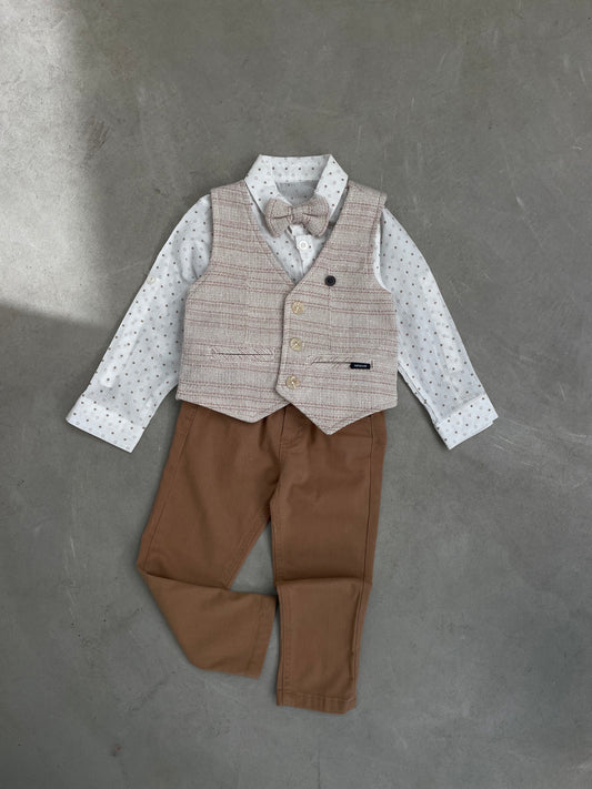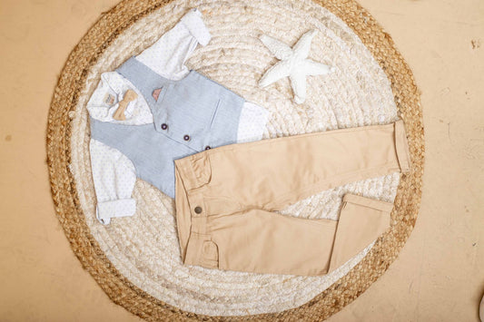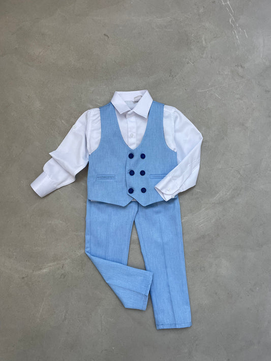 Set me tre pjese. Vjen me jelek me kopsa perpara , kemishe dhe pantallona te...