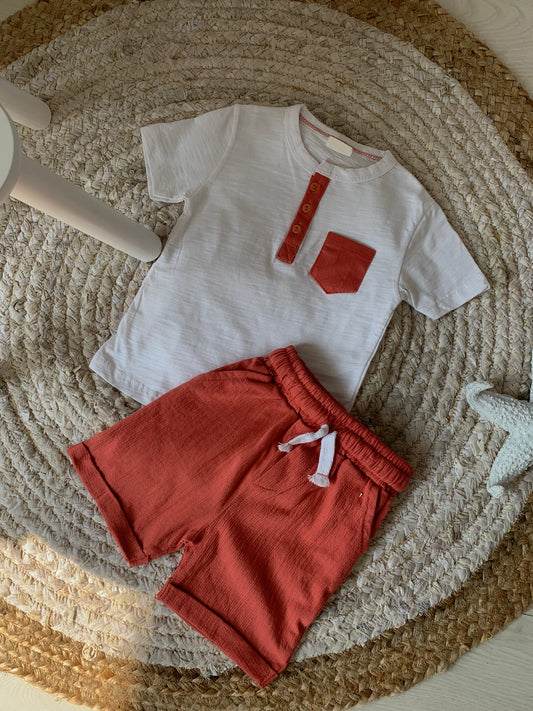 Set bluze dhe pantallona te shkurter . Bluza vjen me nje xhep ne pjesen perpara....