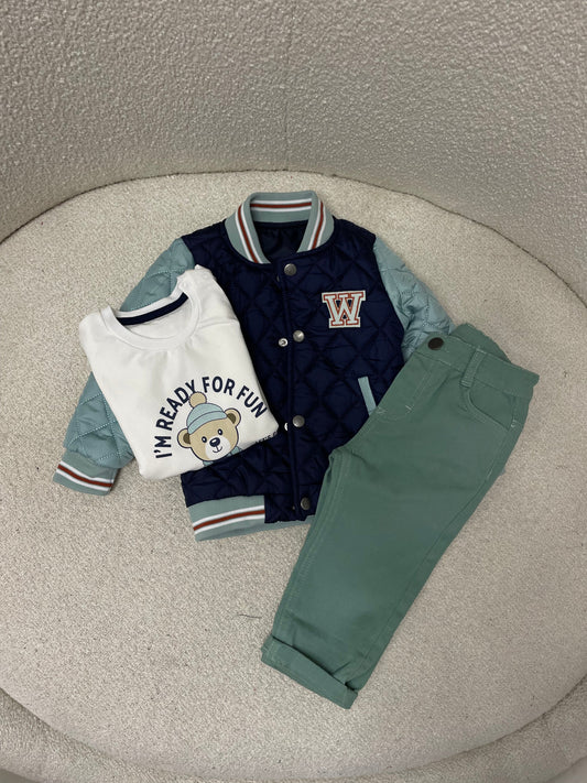 Set me tre pjese me xhup,bluze dhe pantallona.Ka material te plote dhe cilesi fantastike. Super...