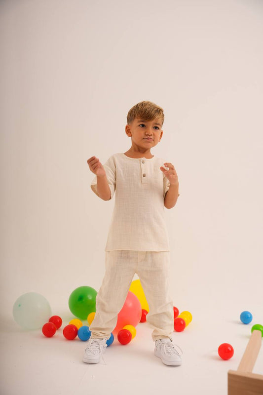 Set lino per djem. Vjen me bluze me menge te shkurter dhe tuta te gjata....