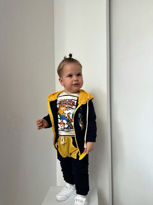 Kostum sportiv me personazhin vizatimor Simba. Vjen me bluze me menge te shkurter dhe tuta...