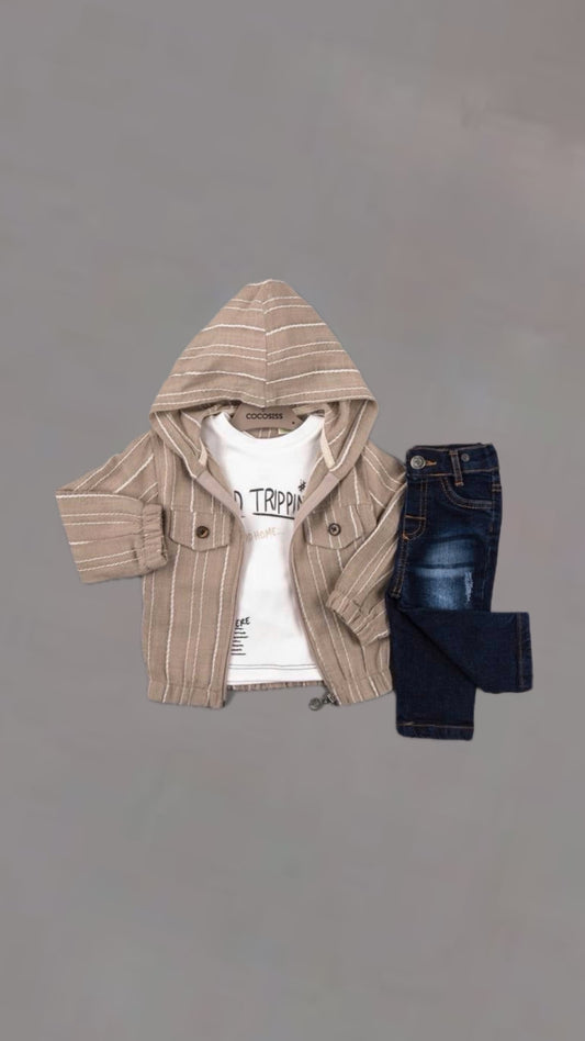 Set me kater pjese per djem. Vjen me xhakete feshe me kapuc,kemishe me kuadrata,bluze me...
