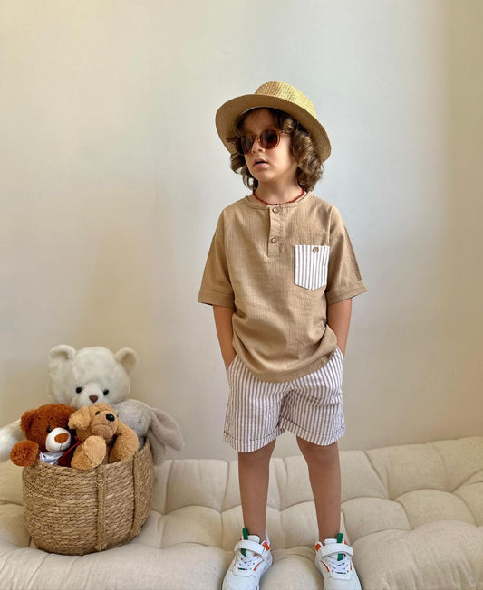 Kostum lino me bluze dhe tuta te shkurtra me vija.Cilesi fantastike!
