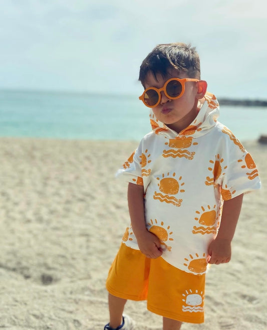 Set me dy pjese. Vjen me bluze me kapuc dhe tuta te shkurtra me diell....