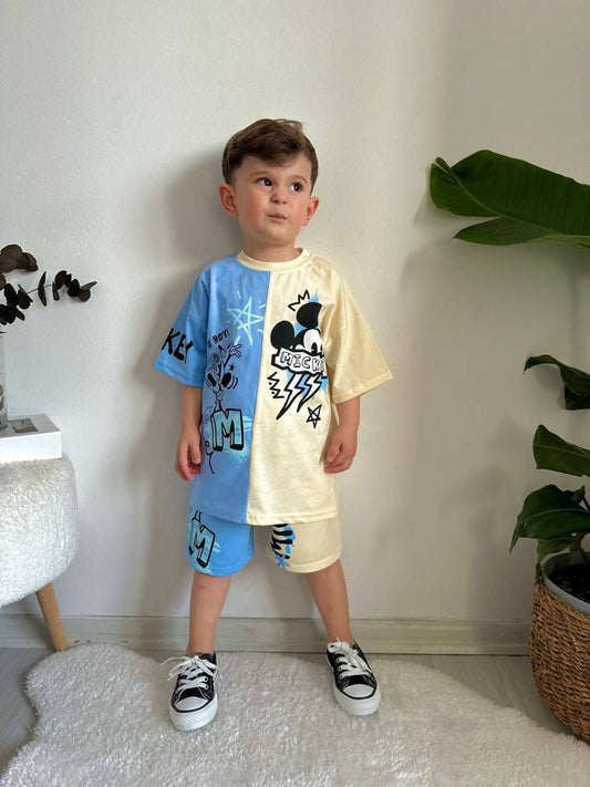Set me dy pjese. Vjen me bluze dhe xhinse te shkurtra me Mickey Mouse. Cilesi...