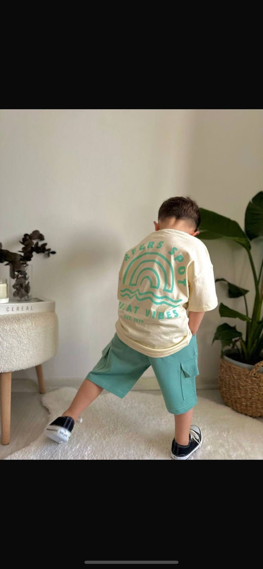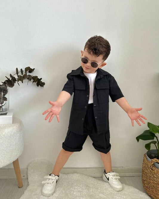 Set me tre pjese per djem. Vjen me xhakete,bluze me menge te shkurtra dhe tuta....