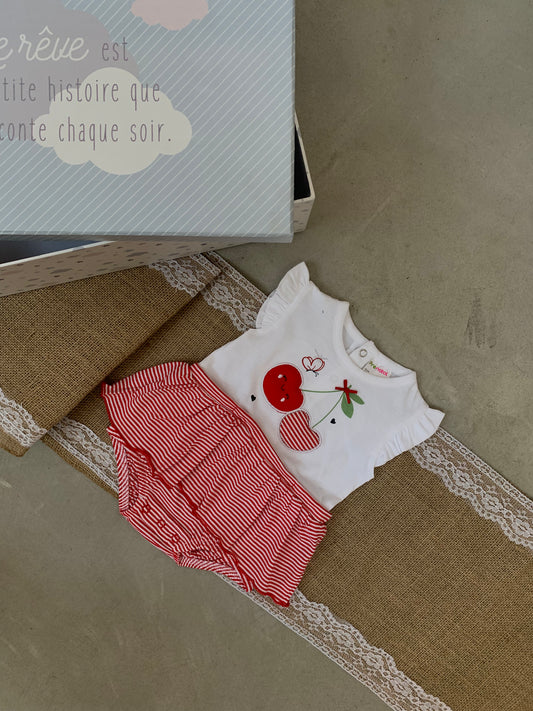 Body-fustan me qershi. Vjen me krahe te shkurter dhe pjesa e poshtme eshte me viza....