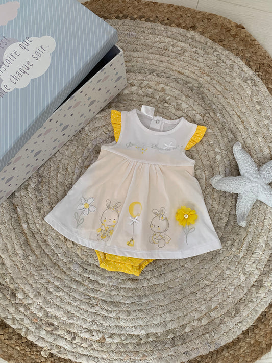 Body-fustan me lule. Vjen me krahe te shkurter dhe kukulla ne pjesen perpara. Ka material...