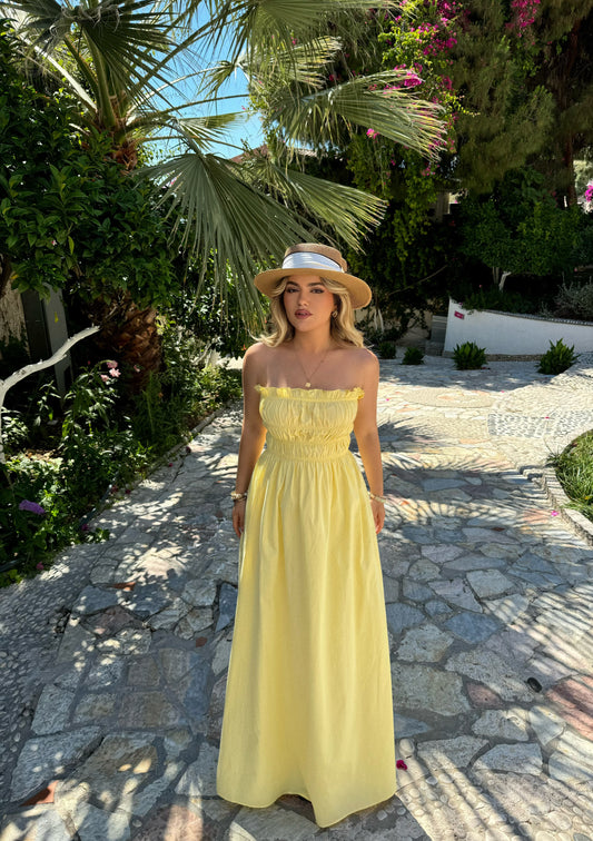 Fustan i gjate bust me llastik ne pjesen siper. Eshte me detaje me lule dhe...
