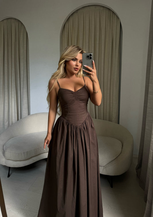 Fustan i gjate bust. Eshte me llastik tek pjesa e bustit. Ka material te plote...