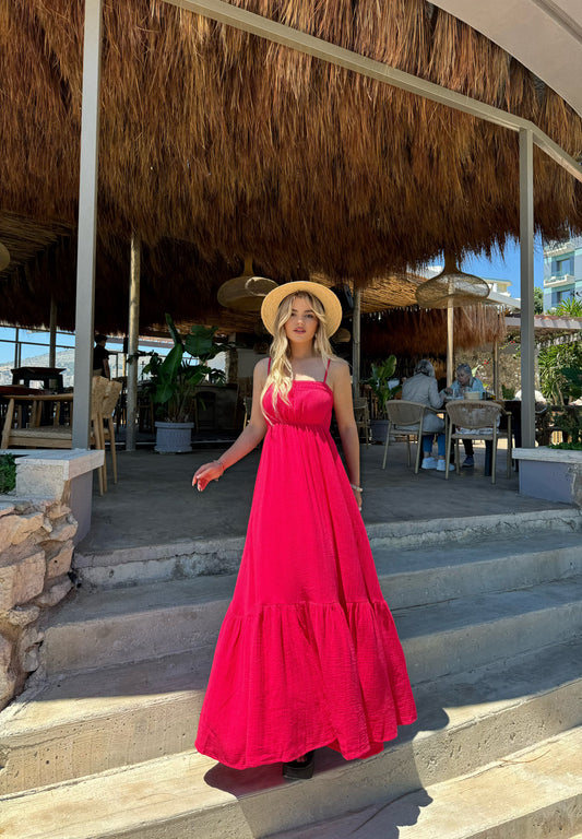 Fustan lino me rripa. Eshte i lirshem si model dhe ka cilesi fantastike. Teper stil...