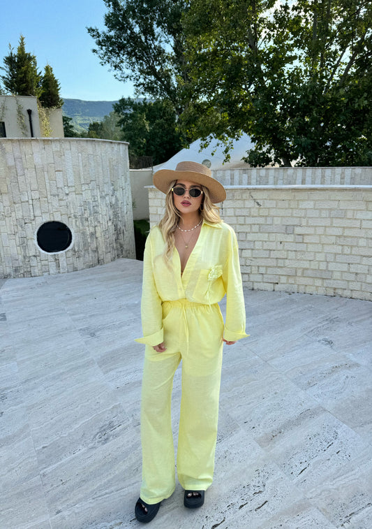 Set me kemishe dhe pantallona te gjata. Eshte me detaje shume te bukura dhe ka...