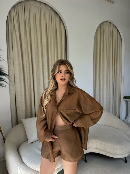 Set me kemishe me xhepa para dhe pantallona te shkurtra. Eshte shume stil dhe ka...